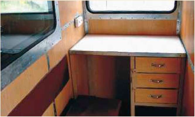 мойка с баком для воды 20 литров; полумягкими откидными сидениями с фиксаторами в сложенном состоянии (по боковым сторонам модуля + одно отдельное сидение); окнами с боковых сторон модуля; откидным столом с фиксаторами в сложенном состоянии; местами для багажа в верхней части модуля; огнетушителем порошковым V-5л; тремя розетками 24 В; переговорным устройством с кабиной ТМ-120; дополнительным освещением 24 В; дополнительной дверью с боковой стороны модуля; основной дверью с тыльной стороны модуля с фиксаторами в открытом положении; аптечкой; вешалками для одежды; двумя окнами с тыльной стороны модуля; лестницей для обеспечения самостоятельной посадки (высадки) рабочих с поверхности земли в модуль |