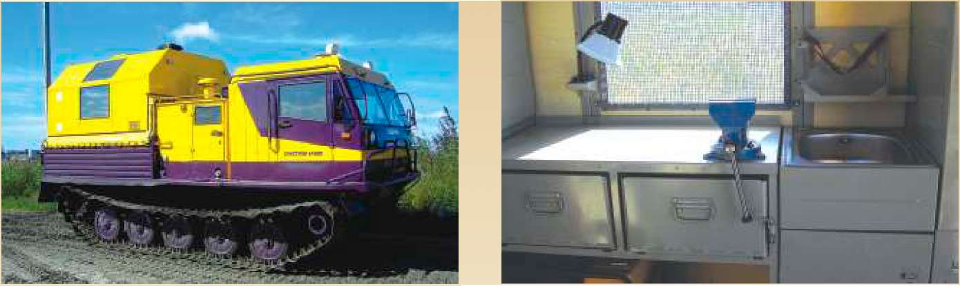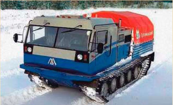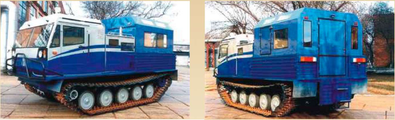 Транспортировка модуля производится в кузове, что обеспечивает возможность его эксплуатации в труднопроходимых местах (глубокий снег, болота, наличие водных преград). Максимальная скорость гусеничного плавающего вездехода с жилым модулем - 50 км/ч.