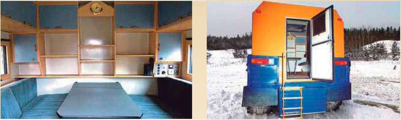 По желанию заказчика модуль-мастерская может быть доукомплектован дополнительным оборудованием в соответствии с техническим заданием заказчика. Модуль снаружи оборудован верхним люком, внутри - люками для обслуживания трансмиссии вездехода.